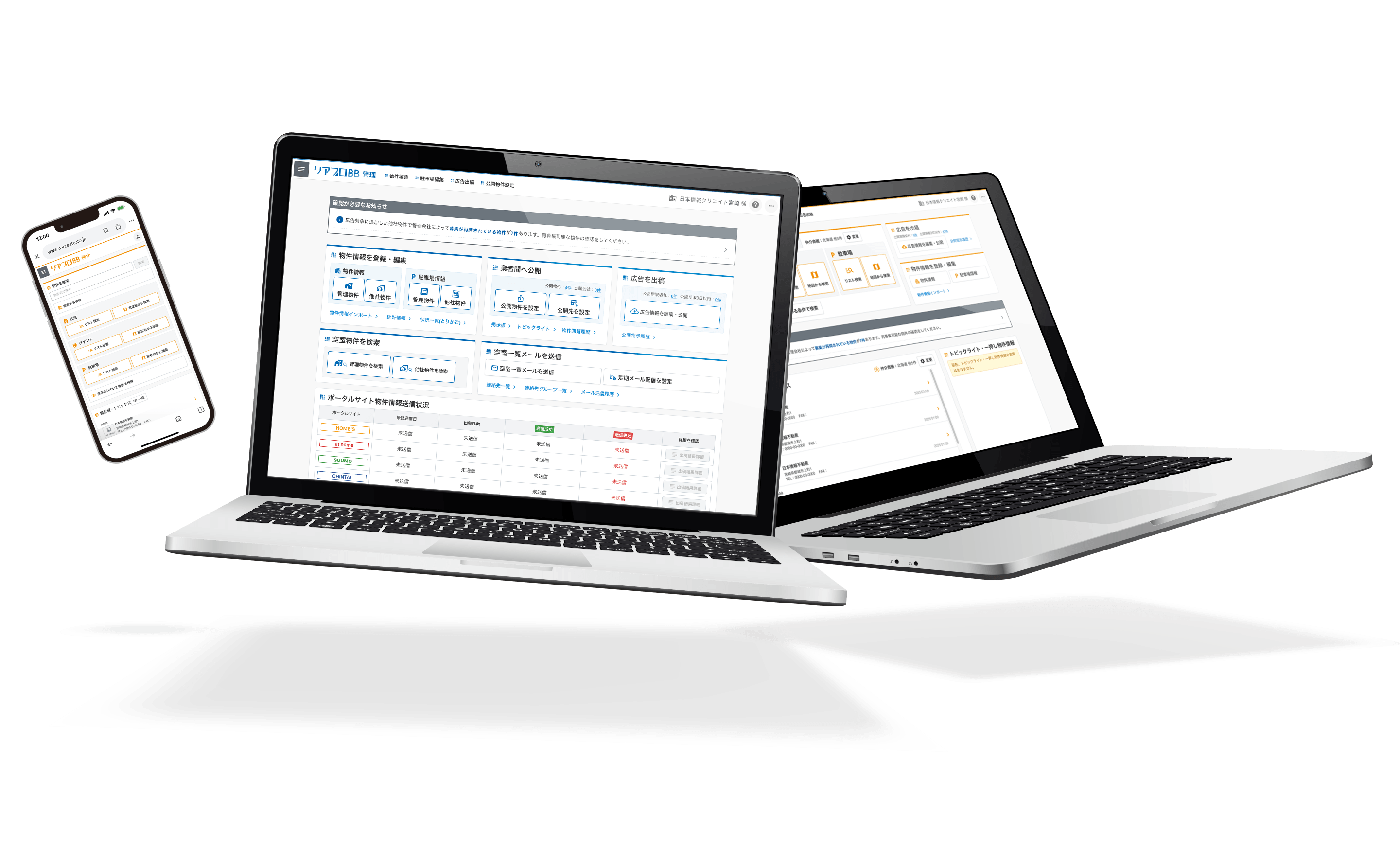 管理会社と仲介会社がリアルタイムに物件情報を共有し業者間の業務をサポートします。